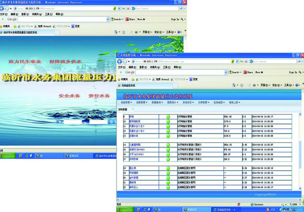 三、系統(tǒng)功能 v 實時采集管道壓力、流量數(shù)據(jù)數(shù)據(jù)接收中心服務(wù)器; v 能顯示整個管網(wǎng)系統(tǒng)的供水管線圖及地理分布圖(及用戶用水信息); v 集中顯示各監(jiān)測點重要參數(shù)(如瞬時流量、累計流量、壓力、電池電壓、報警狀態(tài)、通訊狀態(tài); v 各用水單位的界面和報表功能,可隨時增加或刪除,操作方便快捷; v 按區(qū)域、地塊劃分用戶,注明長期用戶和季節(jié)性用戶,能單獨顯示各用戶子站的全部測量參數(shù)及設(shè)置參數(shù); v 能自動生成各用戶的瞬時流量、累計流量、壓力的并行歷史曲線,并可查詢?nèi)我庥脩?、任意參?shù)、任意時段的歷史數(shù) 據(jù),歷史數(shù)據(jù)和曲線可以轉(zhuǎn)存和打印; v 能生成各用戶的用水量日報表,月報表及年報表,生成分時等特殊報表的功能。任意組合用戶測量趨勢、測量參數(shù)累 計、故障時段等趨勢記錄打印輸出。 現(xiàn)場圖片  |